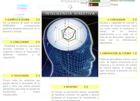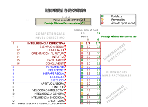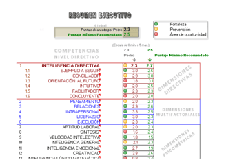 A continuación abordaremos la interpretación cualitativa de sus resultados enfocándonos tanto en sus áreas de oportunidad, como en sus fortalezas v estilos personales. Esto le dará una visión más clara para direccionar su esfuerzo. establecer prioridades, estrategias y planes de acción con miras a lograr un crecimiento persona integral sostenido v sustentable. Más allá de los consejos venidos y los cursos oficiales o accesibles, su desarrollo real dependerá de su disposición a crecer, asumir convicción y compromiso de su autodesarrollo, el cual se materializará en el alcance y calidad de su gestión, con efecto en cascada hacia el capital humano a su cargo, multiplicando el beneficio en una empresa de clase mundial como la C.F.E