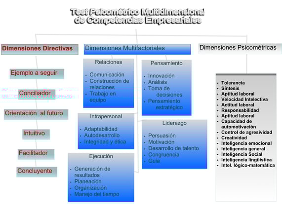 La propuesta se sustenta por un amplio análisis multidimensional de 180 factores psicométricos que se sintetizan en 14 competencias determinadas de alto impacto, agrupadas en 3 dimensiones: